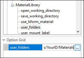 If you have exported several modified materials, or received material keyword files from other sources, you may wish to place them in a local User Materials Library to make it easier to copy those material definitions into projects.