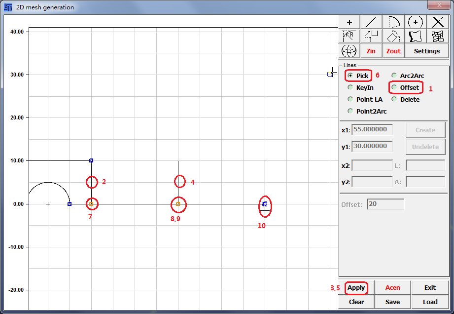 Click to offset the rightmost vertical line a distance of 20 to the right.