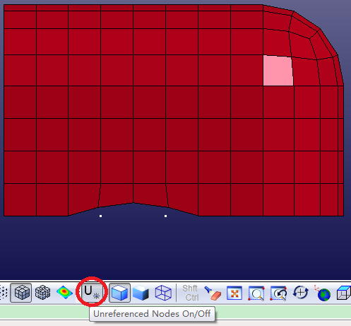 Contents Part II: Mesh Tutorials | Chapter 2: Introduction to Element Editing | Print page 2.2. Show Unreferenced NodesClick Unreferenced Nodes On/Off to show all free/unreferenced nodes. « 2.1. Open Existing Keyword File 2.3. Create Node Between Existing Nodes »