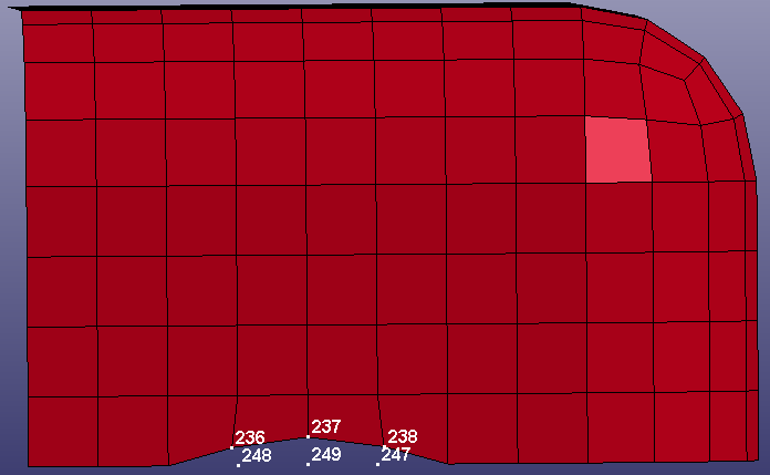 Contents Part II: Mesh Tutorials | Chapter 2: Introduction to Element Editing | Print page 2.4. Identify a Group of Nodes by IDClick FEM > Element Tools > Identify.Pick the nodes (236, 237, 238, 248, 249, 247) on the model.Click Done. « 2.3. Create Node Between Existing Nodes 2.5. Replace Nodes »