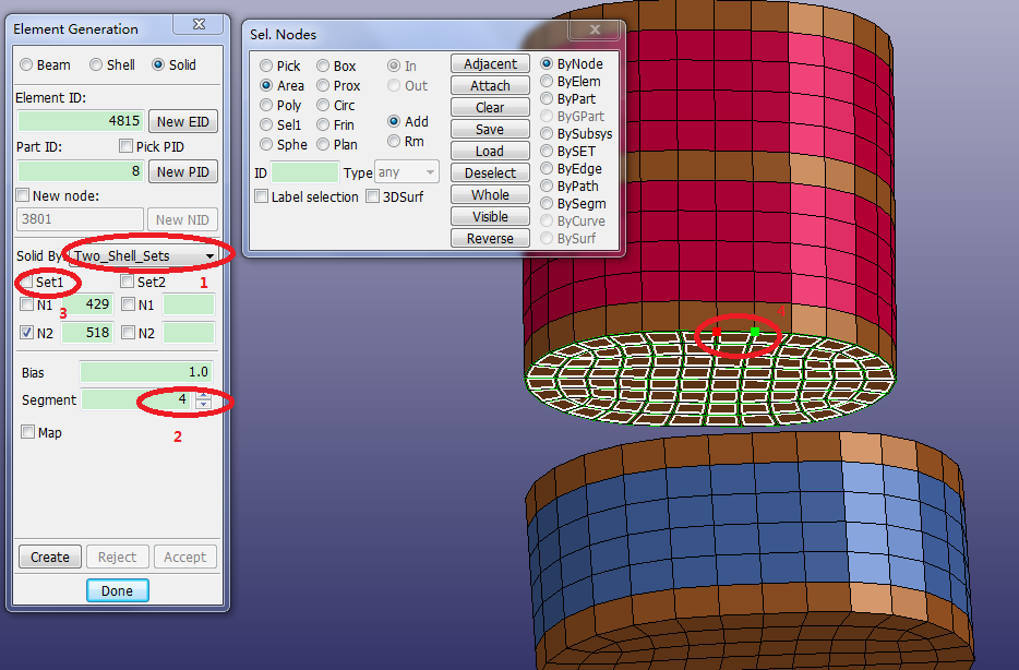 Select Solid By: Two Shell Sets in the Element Generation Interface.