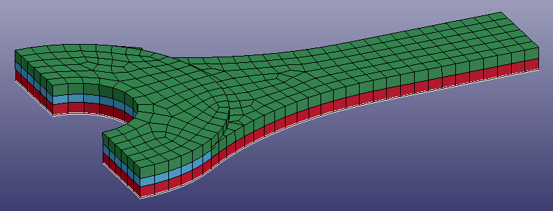 Contents Part III: Model Tutorials | Chapter 4: Creating a Composite Laminate with Dropped Layer | Print page 4.8. Optional Step: Verifying That the Offset Has Been Correctly AppliedClick Thickness radio button.Click the Thick display check box on and off and verify that the reference surface is at the bottommost surface.The result should look like this:Turn the Thick Display off to prepare for the next step. « 4.7. Set the Reference Surface 4.9. Applying Fiber Directions »