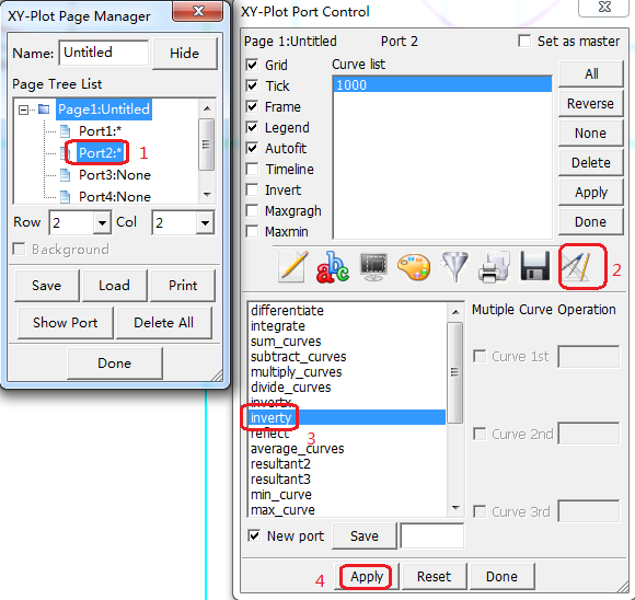 Contents Part IV: Post Tutorials | Chapter 2: Plot a Force vs. Displacement Curve | Print page 2.5. Invert Displacement vs. Time curveRight-click Port2 in XY-plot Page Manager.Click Control.Click the Process XY-plot data icon (Item 2).Select inverty.Click Apply. « 2.4. Plot Displacement vs. Time curve 2.6. Save Displacement vs. Time curve »