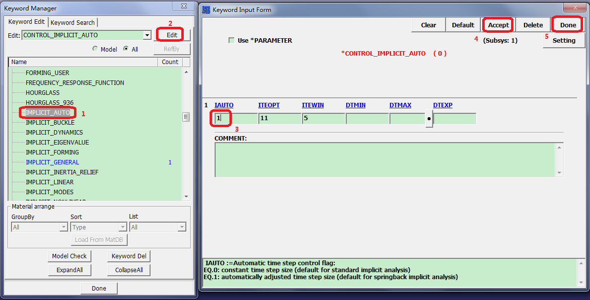 1in the Keyboard Input Form popup form.Click .