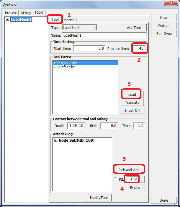 Contents Part V: Application Tutorials | Chapter 6: Introduction to Dynfold | Print page 6.2. Load Tool File and Define Tool Attaching to Airbag « 6.1. Load Airbag 6.3. Define Motion of Roller Parts »
