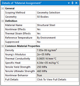 Select the entry field of the Material Name property, open the flyout menu, and select Structural Steel as the material.