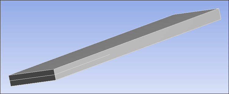 Right-click the Model cell and select Edit. Mechanical opens and displays the model. Note that the mesh is composed of linear elements, and VCCT is only applicable to linear elements. Orient the model as shown below.