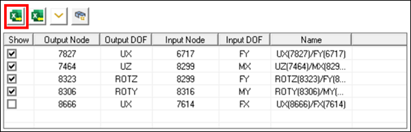 You can also use the option of importing a worksheet from Excel to populate the node pair data in the FRF Worksheet table instead of adding it manually as described in steps 6a to 6e. Note that the data in the Excel file should be in a specific format as described under Import Worksheet from Excel in the FRF Worksheet documentation.
