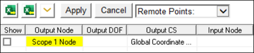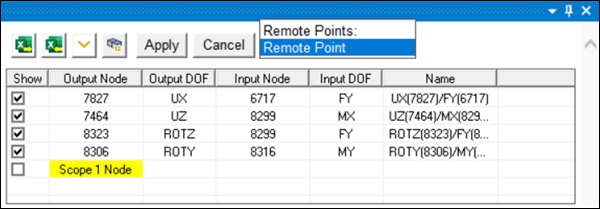 Add another row in the worksheet. Add an output or input node using the Remote Points drop-down menu as shown in the figure below and click to scope the node at the remote point (node ID