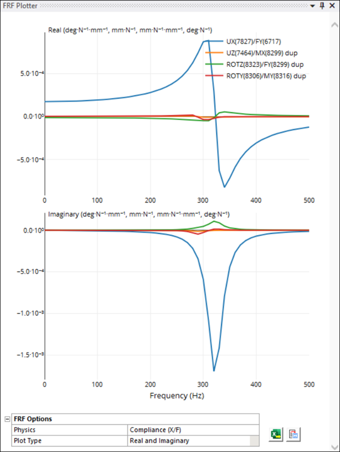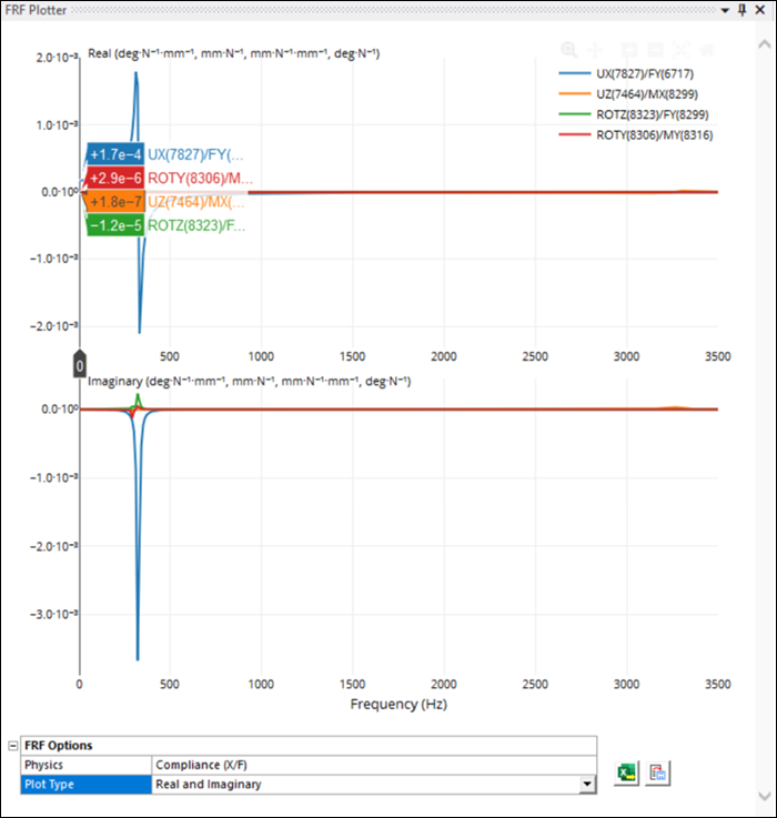 Now export the FRF Plotter data using the file option (see the FRF Worksheet documentation for more information).