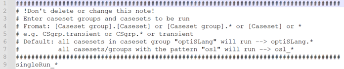 | File name for caseset-to-run file | casesets2run.tdosl | File name searcher to consider the introduction of an additional case set to be executed |
