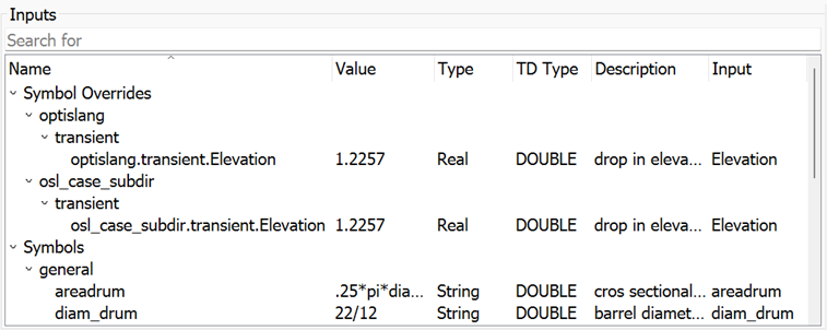 This node extracts inputs from the parameterized Thermal Desktop drawing file. Defined Symbols in Symbol Manager and Symbols in override lists that are included in case sets will be presented as inputs in optiSLang. The inputs can be recorded as parameters in optiSLang for further parametric analysis.