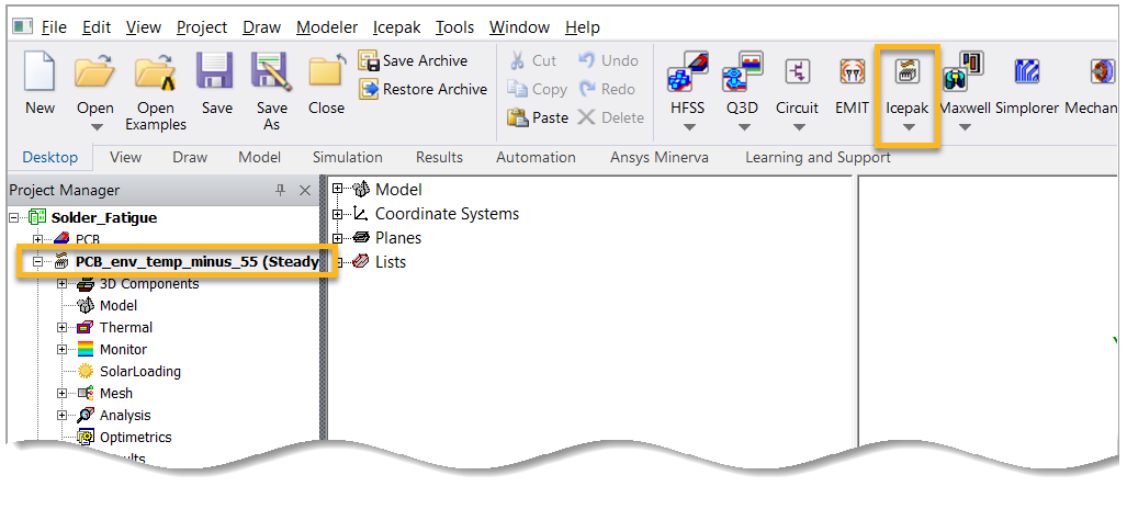 Rename the Icepak Design to PCB_env_temp_minus_55. As