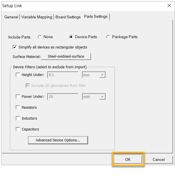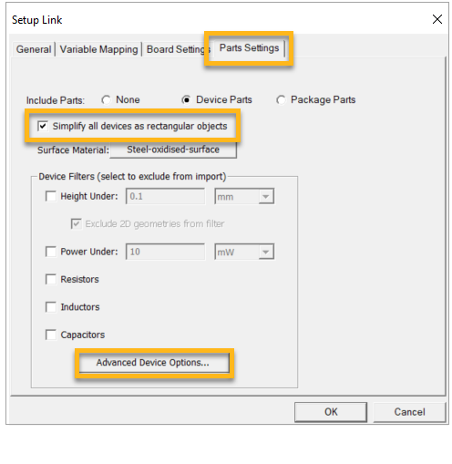 Select the Part Settings tab. Enable Simplify all devices as rectangular objects.