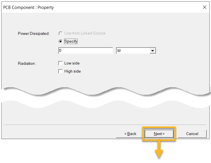 In the Advanced Device Options window, choose the components to be included in the thermal simulation and apply power dissipation settings according to the table below. Steps a through c explain how to filter components for inclusion in the analysis and how to select multiple components at a time to specify their power dissipation.