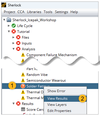 When the analysis is complete, right-click Solder Fatigue in the Project Tree and select in the context menu.