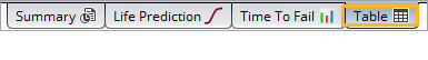 Click the Table tab at the bottom of the display to see each component and their results in the Cycles-to-Fail table.
