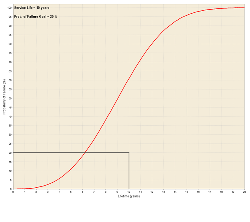 Click the Life Prediction tab to see a graph of the the part's Lifetime in years and its Probability of Failure.