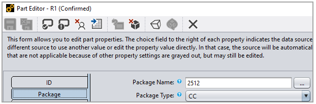 Part Type: The column provides the package/part type as specified by the Package Name and Package Type properties in the Part Editor, as shown below.