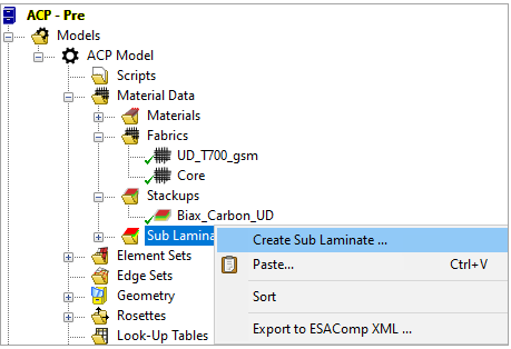 Right-click Sub Laminates and select Create Sub Laminate from the context menu.