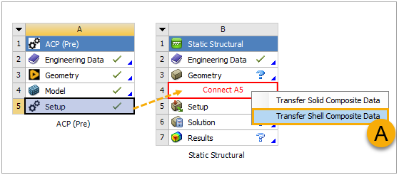 Connect the A5 Setup cell to the B4 Setup cell. (Click and drag from A5 to B4.) Choose the option Transfer Shell Composite Data (A, below).