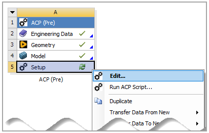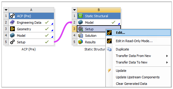 Right-click the B3 Setup cell and select Edit in the context menu. This will open Ansys Mechanical.