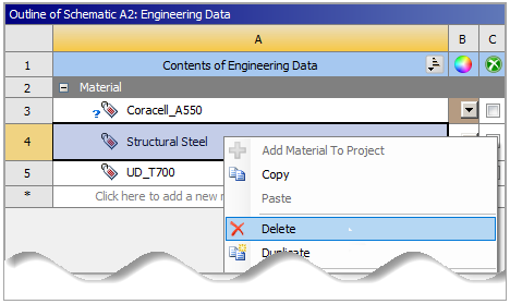 Ply Type Type Isotropic Homogeneous Core Since structural steel is not needed in this project, you may delete it from the Material list. Right-click Structural Steel and select Delete from the context menu.