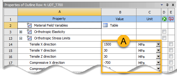Coracell_A550is a foam core. In most cases, foam materials have isotropic mechanical properties.Now assign a value to each material property according to the table below.