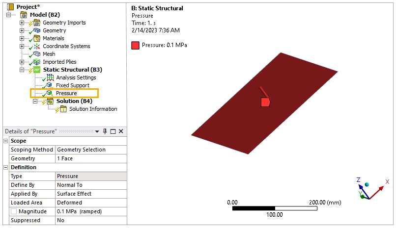 To update the model, you must assign an arbitrary material and thickness to its geometry in Ansys Mechanical. Both properties will be overwritten in ACP later in the tutorial.