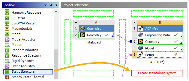 In Workbench, under Analysis System in the Toolbox, add a Static Structural system to the Project Schematic pane.