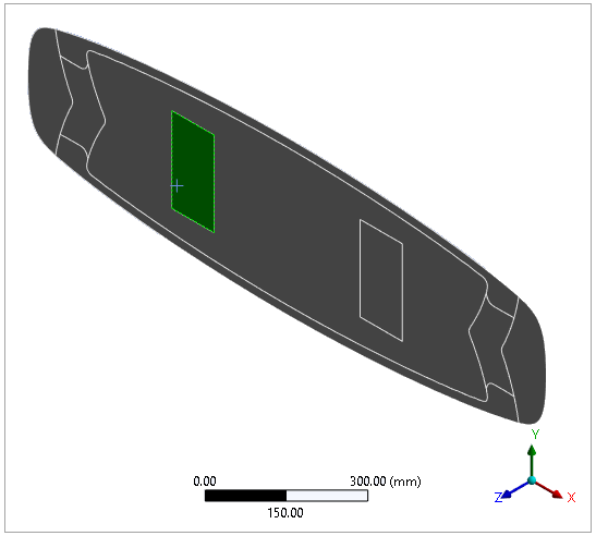 In this section, you will create a rear binder, add boundary conditions, and simulate a force of 1029 N on the kiteboard in Mechanical.