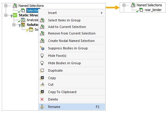 In the tree Outline, right-click Model, then select Insert and Named Selection.