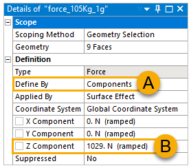 In the Details pane, select Components from the Define by drop-down menu (A). Specify the Z Component to