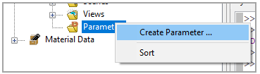 A Parameter is created by selecting Create Parameter... in the context menu of the Parameters object in the ACP Tree View.