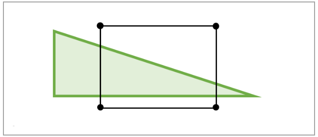 In many cases, the resulting element mesh will not represent all the features of the Cut-Off Geometry. This is especially true when the Cut-Off Geometry has sharp edges or features that are below the resolution of the elements. In the sketch shown below, for example, the finite element retains its shape because none of its nodes fall within the Cut-Off Geometry. To remedy this, you must refine the solid mesh by modifying the original shell mesh.