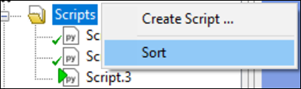 From the context menu of the Scripts folder, sort the scripts alphabetically: