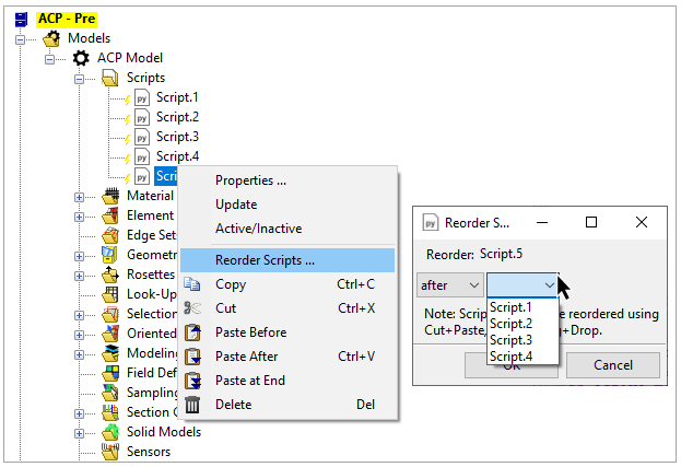 When updating the model, out-of-date scripts are executed in the order shown in the Tree View. You can change this order in the following ways: