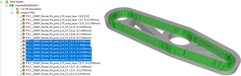 verified by selecting the plies of the solid model. The figure below shows a few plies which