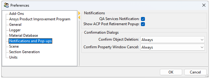 Material Database: Define the path to the material database (.acpMdb file). See Material Database.
