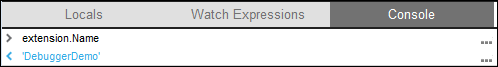 As you execute commands in the console, the debugger reevaluates entries in both the Locals and Watch Expressions tabs.