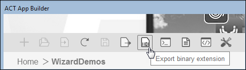 In the ACT App Builder, when an app builder project is open, click the toolbar button for exporting a binary extension.
