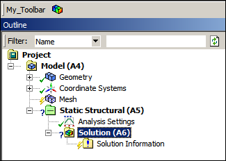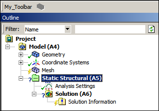 As an example, if the ACT button is bound with an ACT load in Mechanical, this button is activated only if the object is selected in the Mechanical environment. Otherwise, it is inactive.