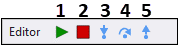 Note: The availability of toolbar actions changes based on the current state of the debugger.