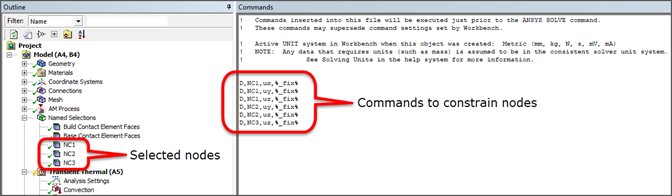 Create commands to constrain the nodes: Click the Static Structural object and select Commands