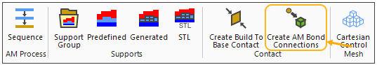 To create AM Bond connections automatically that will connect all appropriate part and support boundaries, highlight the AM Process object and then select the Create AM Bond Connections option on the context toolbar.