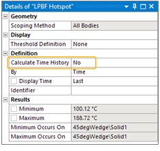 The PBF Hotspot result is applicable for the thermal portion of a PBF Thermal-Structural simulation. Use the result item after the thermal portion, at least, is solved.