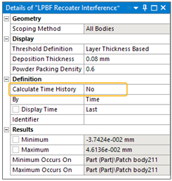 You need to define some sort of threshold for the level of Z-deformation that is considered to be recoater interference. In the PBF Recoater Interference Details view, change the Threshold Definition to one of these three options: