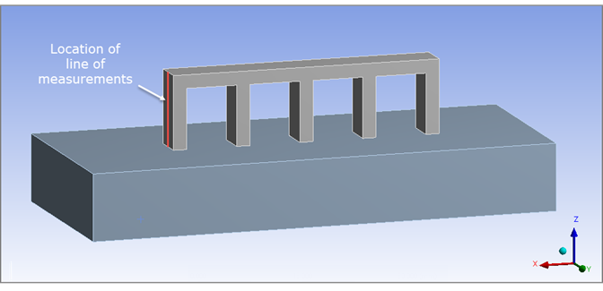 Suppose you want to obtain X-direction deformation along a line on a face of your part, such as shown below, at the end of the cooldown step.