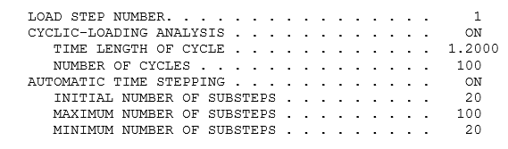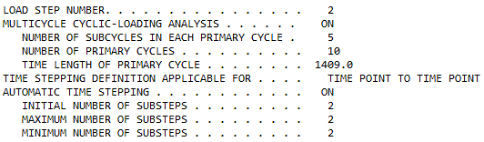 Load-step output includes information about the cyclic-loading analysis:
