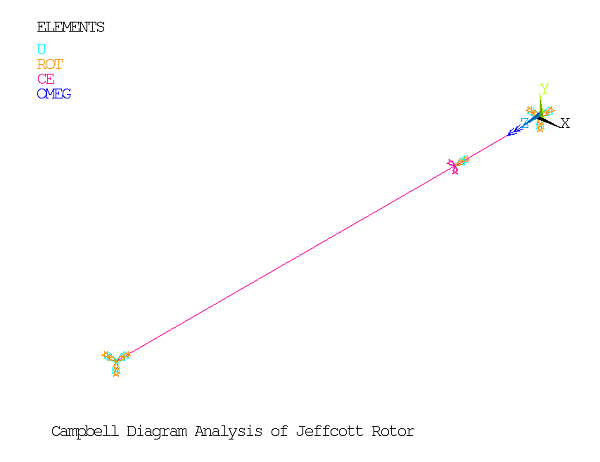 Coriolis effects are activated in the rotating reference frame (CORIOLIS command), and the Campbell procedure (CAMPBELL command) is used to support the Campbell diagram plot.